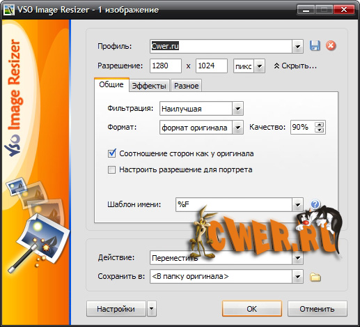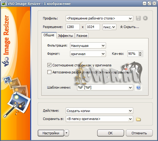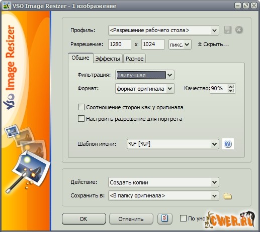 VSO Image Resizer - бесплатная программа для изменения размеров цифровых картинок и изображений в различных графических форматах (на данный момент поддерживается работа с файлами JPEG, GIF, BMP, TIFF, CR2, NEF и т.д.). Также в утилите имеются возможности для компрессии файлов, конвертирования из одного формата в другой, экспорта, наложения прозрачных прозрачных и управления картинками. VSO Image Resizer интегрируется в оболочку Windows, может работать в пакетном режиме, обладает расширенными опциями настройки для продвинутых пользователей.
