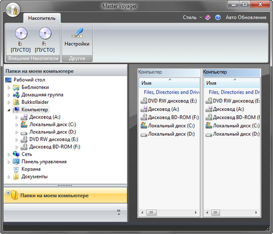 Master Voyager специально спроектирован для создания защищенных DVD/CD дисков и Флеш карт USB. Программа создает защищенные области на носителе и требуется ввести правильный пароль для просмотра этих защищенных областей. Защищенный носитель является полностью автономным и не те требует никакого специального программного обеспечения, установленного на компьютере, для прочтения носителя. Для защиты данных используется алгоритм Advanced Encryption Standard 256 бит. AES является на данный момент одним из самых распространенных в мире способом шифрования данных благодаря скорости и надежности. Программа имеет встроенный модуль для записи CD/DVD дисков и поддерживает диски CDR/CDRW/DVD+-R/DVD+-RW. Каждый защищенный носитель включает в себя модуль АвтоЗапуска (AutoPlay). Необходимо лишь вставить диск в CD привод (или подсоединить флеш карту к USB порту) и ввести пароль в окошко ввода. Единственное требование иметь операционную систему Windows Vista/XP/2000/7 (32 или 64 бит) и CDROM/USB портt. Защищенный носитель не устанавливает никаких файлов на целевой компьютер, так как полностью автономный.