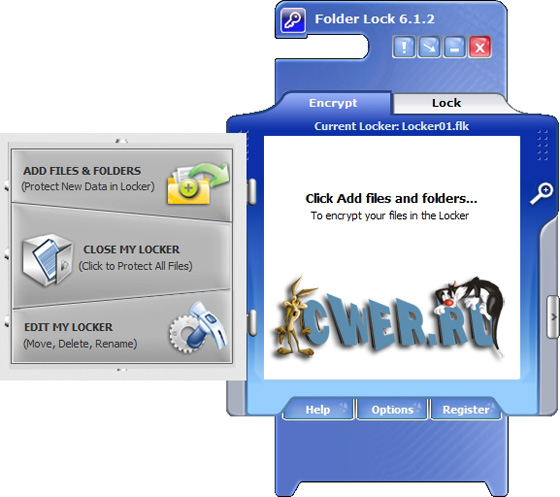 Folder lock - очередная версия программы, которая делает ваши файлы скрытыми, неудаляемыми и очень безопасными, сохраняет ваш пароль, даже когда Вы перемещаете файлы в сменные диски из одного PC в другой, это позволяет Вам зашифровать так же, как закрывать доступ к вашим файлам, но и закрыть доступ к вашему PC.
