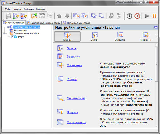 Actual Window Manager - программный пакет из более чем 50 инновационных инструментов для организации Рабочего Стола Windows, повышающий удобство использования и производительность работы с любыми приложениями Windows. С помощью Actual Window Manager вы сможете организовать рабочую среду для удобного, быстрого и эффективного выполнения ваших задач без необходимости отвлекаться на рутинные манипуляции с окнами.