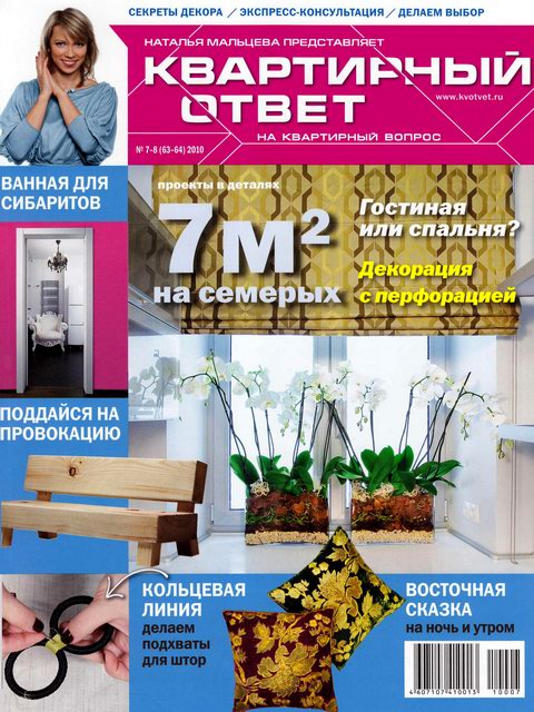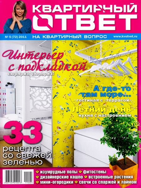 Богато иллюстрированный журнал, созданный на базе телепередачи "Квартирный вопрос" с детальной проработкой проектов, разбором дизайнерских решений, описанием использованных материалов. Целиком посвящен интерьеру и дизайну, полностью соответствует свою телевизионному аналогу – и по тематике и по уровню качества.