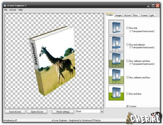 eCover Engineer – программа для создания и редактирования виртуальных трехмерных графических оболочек для Ваших продуктов. Первые впечатления очень важны для потенциального клиента, и первое что он может увидеть, - это упаковку интересующего его продукта. Для большинства это решающий момент, - остановится или пойти дальше. Имея красивую красочную и привлекательную коробку, вы на 50% уже заинтересовали вашего клиента в его выборе. Профессиональный софт для подобных целей стоит достаточно дорого, но eCover Engineer поможет вам в этом. Создавайте ошеломляющие виртуальные обложки для ваших книг, бокс-коробки для программ, обложки CD и DVD. Используйте гибкие настройки и различные вариации, предлагаемые eCover Engineer, и успех вам гарантирован!