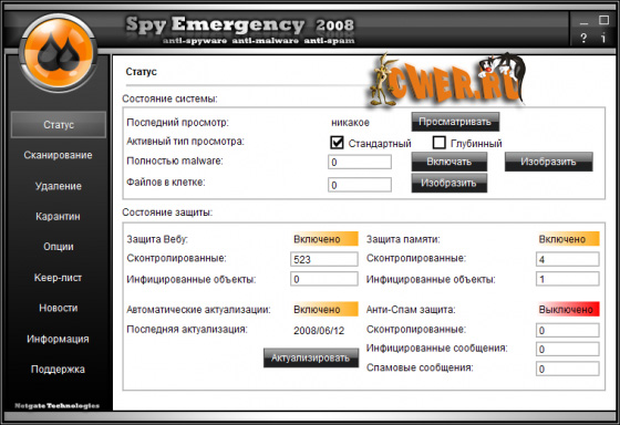 Spy Emergency 2008 - это anti-spyware программа, отслеживающая spyware, adware, malware, homepage hijackers, remote administration tools, dialers, keyloggers и многие другие виды инфекции.