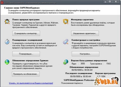 Новая версия утилиты для обнаружения и удаления вредоносных программ. SUPERAntiSpyware сканирует память, реестр и файлы на предмет заражения шпионскими модулями. Средствами программы найденных паразитов можно удалить или поместить в карантин. Предусмотрена возможность сканирования тремя способами: при быстром сканировании проверяются только самые распространенные места заражения, при полном - все файлы, а в третьем режиме можно самостоятельно выбрать область проверки.