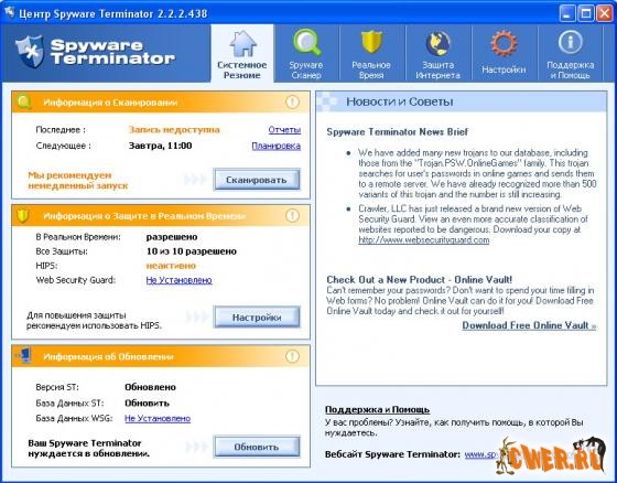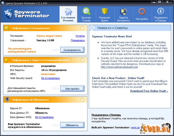 Spyware Terminator – мощный adware и spyware сканер с защитой в реальном времени, который может обнаруживать, удалять или изолировать spyware, adware, Троянов, кейлоггеров, похитителей персональных данных и другие возможные угрозы. Сканирование может быть настроено по желанию пользователя. В состав Spyware Terminator входит планировщик, а также защита в реальном времени для вашего браузера, хост-файлов, данных автозапуска и других системных областей.