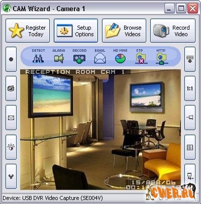 Cam Wizard превращает вашу веб камеру в мощную CCTV систему наблюдения с определением движения. Данная программа – это лучшее решение по повышению безопасности с помощью веб камер для вашего персонального компьютера с операционной системой Windows XP. Когда Cam Wizard постоянно функционирует и постоянно наблюдает с помощью вашей компьютерной веб камеры, обнаруживая любые движения по периметру или в определенном пользователе углу периметра наблюдения. Когда обнаруживается движение, начинается видео захват в видео файл.