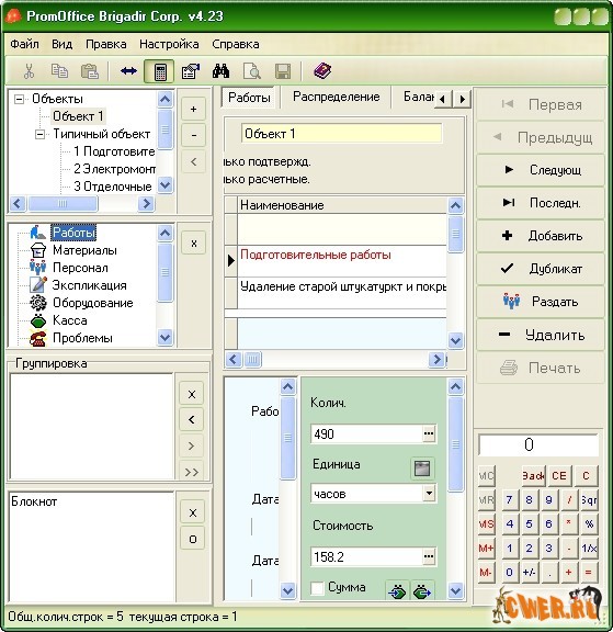 Программа PromOffice Brigadir предназначена строительным подрядчикам для "визуализации" и каталогизации ремонтно-строительных работ. Программа позволит в любой момент четко и детально изучить затраты на тот или иной вид работ, зафиксировать исполнение, наличие дефектов, вести график работ, распределить материалы и персонал по объектам...