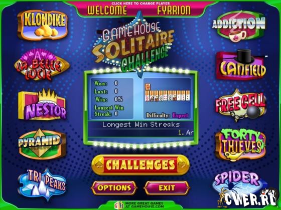 Набор увлекательных пасьянсов. В игре 10 видов классических пасьянсов и 4 красочных колод.