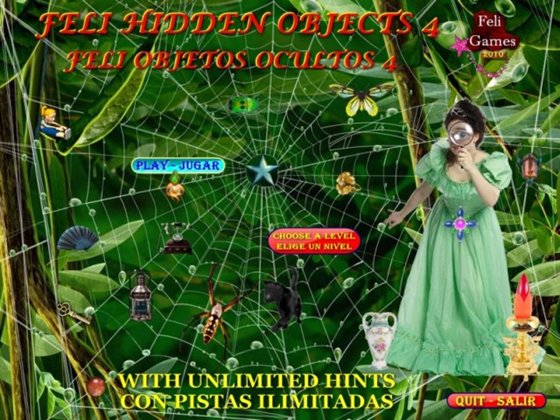 Четвертая часть. Простая и милая игра в жанре "Я ищу", созданная обычным любителем - Feli44, для удовольствия. Игра на двух языках, английском и испанском. Всего в игре 15 уровней чистого поиска, с приятной музыкой, без гонки на время.