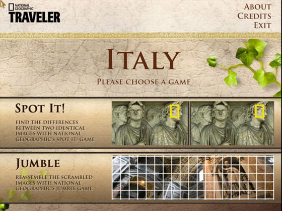 Увлекательная игра в жанре "Найди различия" и "Cобери картинку". Захватите свои чемоданы и отправляйтесь в Италию, поскольку Вы являетесь профессиональным фотографом от National Geographic. Исследуйте эту прекрасную страну, которая имеет богатую историю и захватывающий дух пейзажи. Проверьте свои знания используя интерактивный атлас, который поможет найти ответы о каждой области Италии или загрузите Ваши собственные фотографии, для создания персональной игры. Позвольте своему приключению начинаться прямо сейчас.