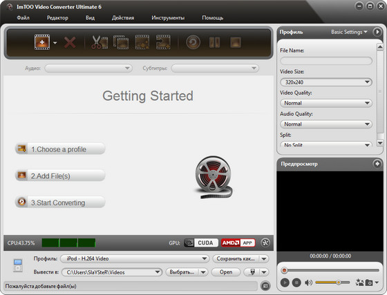ImTOO Video Converter - является простой в использовании программой, которая позволяет редактировать и конвертировать видео, аудио и анимированные изображения. Данная программа, является лучшим видео конвертером для преобразования видео HD: H.264/MPEG-4 AVC, AVCHD (*. m2ts, *. МТС), MKV, WMV HD, TS HD MPEG2/MPEG-4. Может конвертировать видео из HD в SD, конвертировать различные общие форматы видео: AVI, MPEG-4, WMV, DivX, H.264/AVC, и извлекать аудио и изображения из видео. Даже создать видео из фотографий далее с гибкими функциями слияния/обрезания/редактирования/разделения.