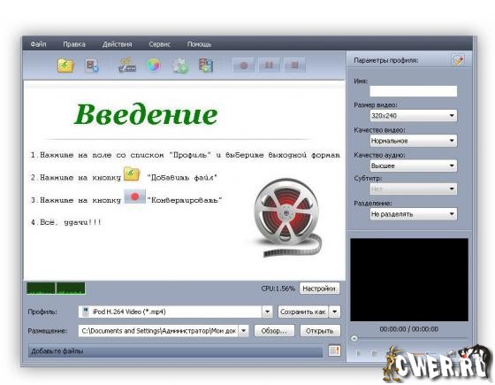 ImTOO MPEG Encoder - мощная утилита для конвертирования видео-файлов. Программа позволяет конвертировать файлы любых форматов, таких как AVI, MPEG, DivX, WMV, MP4, MOV, FLV, 3GP, PSP MPEG-4, iPod MPEG-4 и другие. Помимо этого программа может извлекать аудиодорожку из видео-файлов, конвертировать большинство популярных звуковых форматов, таких как MP3, WMA, WAV, AAC, M4A и другие. С помощью программы можно быстро и с высоким качеством конвертировать любой файл в мобильные форматы 3GP, FLV, PSP, Zune, iPod, iPhone, Apple TV для дальнейшего использования в портативных устройствах.