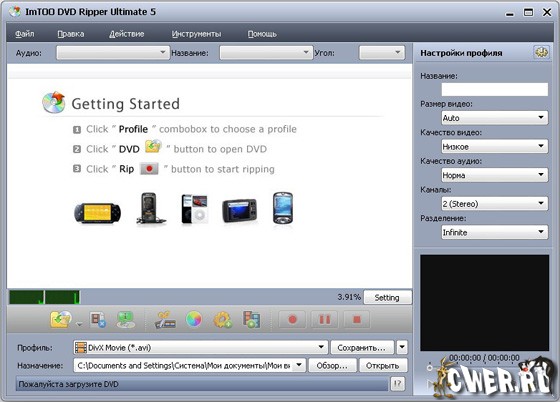 ImTOO DVD Ripper Ultimate - это одна из лучших программ на сегодняшний день по конвертации DVD и созданию рипа непосредственно с DVD диска (совместная разработка ImTOO Software Studio и Xilisoft Corporation). Конвертирует DVD в любые видео и аудио файлы, воспроизводимые на многих цифровых мобильных устройствах (PSP, PS3, iPod, iPhone, Apple TV, Archos, iRiver PMP, Creative Zen, мобильные телефоны, смартфоны...).