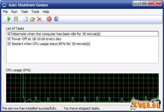 С помощью приложения Auto Shutdown Genius вы можете автоматически выключать, выходить, блокировать рабочую станцию, переводить в спящий режим, или запускать скринсейвер на вашем компьютере в соответствии с запланированным временем и датой.