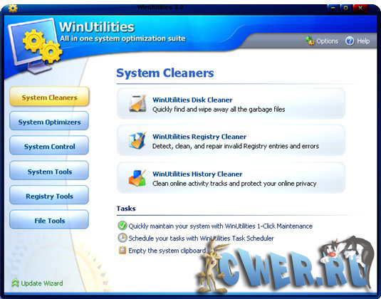 Набор инструментальных средств, предназначенных для того, чтобы оптимизировать вашу систему, удалить ненужные файлы и очистить данные, которые остаются после работы в интернете. WinUtilities позволяет находить и удалять критические неисправности, битые ссылки и ключи в реестре, поможет правильно удалить ваши приложения и программы, а также очистит историю интернета, cookies и многое другое. С помощью программы WinUtilities можно настроить автозапуск программ, при этом вам не надо ничего писать все операции выполняются нажатиями мышки. Так же программа может находить дубликаты файлов и если надо удалять их, стереть следы вашей деятельности за компьютером.