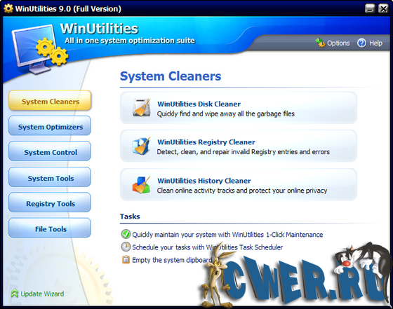 WinUtilities - набор утилит, предназначенных для настройки операционных систем семейства Windows. WinUtilities позволяет находить и удалять критические неисправности, неправильные ссылки и ключи в реестре, поможет правильно удалить приложения и программы, а также очистит историю интернета, cookies и многое другое. Также в программе есть возможность настроить автозапуск программ и изменять скрытые опции ОС.