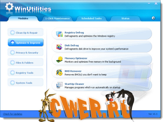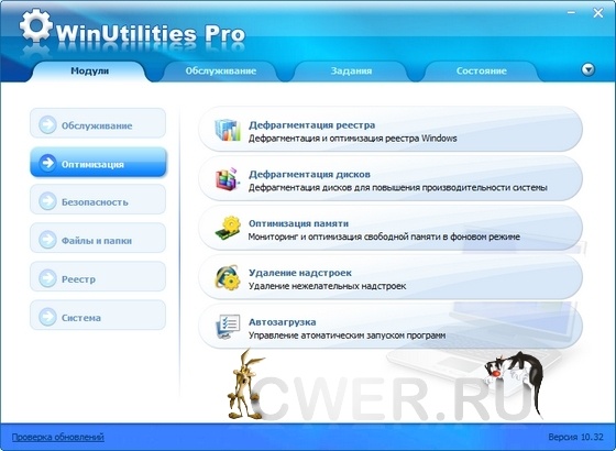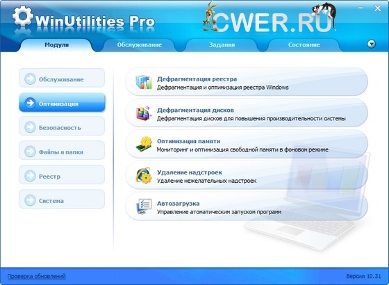 WinUtilities - набор утилит для настройки системы семейства Windows. Содержит более 20 инструментов для оптимизации и настройки производительности операционной системы. Предлагает удобный в использовании интерфейс, который организует все задачи по категориям и предоставляет графическую статистику там, где это возможно.
