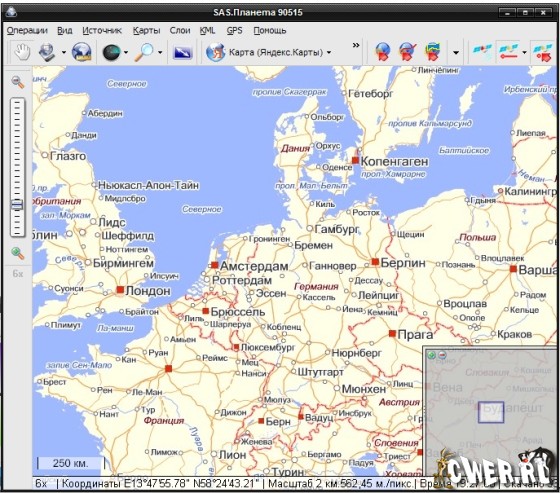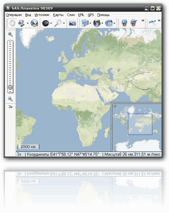 SAS.Планета - программа предназначеная для просмотра и загрузки спутниковых высокого разрешения снимков и обычных карт, представляемых такими сервисами, как Google Maps, DigitalGlobe, Проект “космоснимки”, Яндекс.карты, Yahoo!, VirtualEarth, Gurtam, OpenStreetMap, eAtlas и др., но в отличие от этих сервисов, все скаченные вами карты останутся у вас на компьютере, и вы сможете их просматривать даже без подключения к интернету. Помимо спутниковых карт возможна работа с политической, ландшафтной, совмещенной картами, а также картой луны и марса.