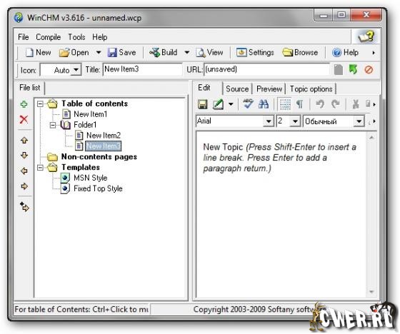 WinCHM - небольшая утилита для создания файлов помощи, книг или журналов в формате HTML и CHM (help file), Web help, PDF and Word файлов. Программа имеет визуальный редактор. Так же вы сможете не только создавать, а и конвертировать HTML файлы в CHM файлы, устанавливать иконки созданным файлам и многое другое. Есть поддержка созданных шаблонов при последующем создании документов. Страницы справок создаются в удобном редакторе, большим плюсом является то, что она не использует сторонних компиляторов, при этом имеет сравнительно небольшой размер.