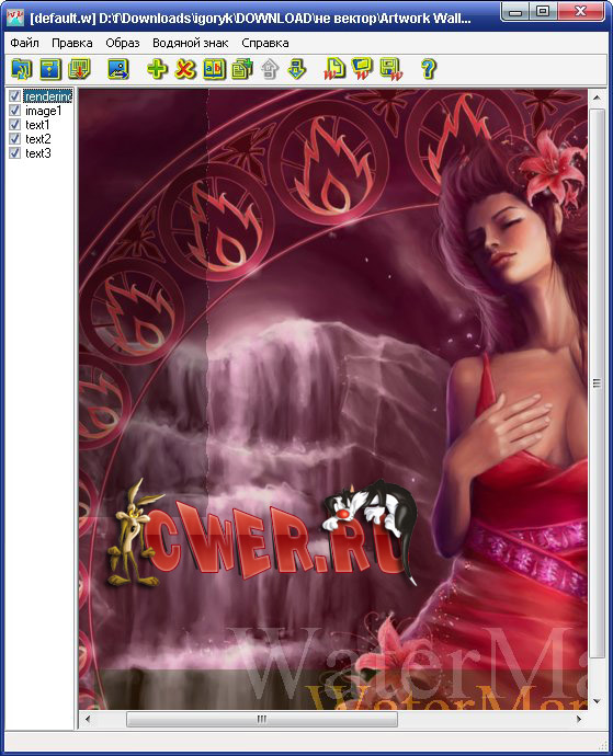 Программа Image Watermarks предназначена для создания водяных знаков на изображениях. Позволяет создавать знаки в виде текста, картинки с различными опциями (размер, цвет, позиция, прозрачность). Можно выбирать размер и тип сохраняемого файла. Есть возможность сохранять и загружать проекты знаков.