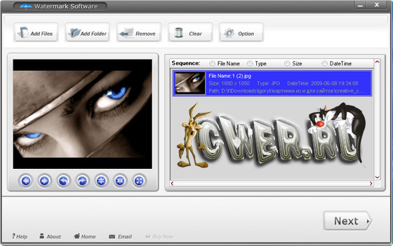 Watermark Software - программа для наложения водяных знаков на изображения. С помощью данной прогаммы можно добавлять текст, графику и логотипы на картинки для защиты от копирования. Кроме нанесения водяных знаков, данная программа позволит, добавлять рамки к вашим фотографиям, обрезать фотографии, переименовывать несколько файлов в пакетном режиме, изменять размер изображений и многое другое. Данная программа обладает быстрой обработкой фотографий и имеет поддержку всех популярных графических форматов. Программа имеет приятный и легкий в использовании пользовательский интерфейс.