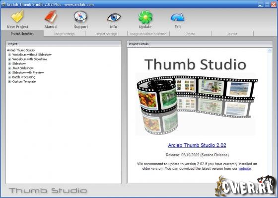 Thumb Studio - простая в использовании программа для создания галерей изображений, создания слайдшоу и наложения водяных знаков на фотографии. Кроме того, программа является конвертером между форматами изображений, который с легкостью позволяет создать три различных размера для изображения за один раз и конвертировать их в различные форматы. Программа не только содержит несколько шаблонов, которые могут быть изменены по-вашему желанию, но также и позволяет запросто интегрировать альбом или слайд-шоу прямо в вашу существующую веб-страницу. В добавок, вы сможете создавать JAVA слайдшоу.