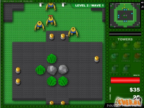 Флешка из серии легендарных "башен". Ваша задача оборонять территорию, не давая врагу пересечь её из начала в конец. В Вашем распоряжении разнообразное стационарное оружие(пушки, ракеты, лазеры и т.д.). За уничтоженные боевые единицы противника Вам платят деньги, на которые можно купить новое оружие(модернизировать уже имеющееся) или разнообразную "недвижимость".
