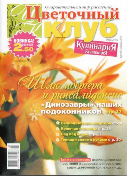 Журнал о комнатных цветах и растениях. Здесь вы найдёте информацию не только о "старожилах" наших квартир, но о новинках, которые только начали появляться на прилавках цветочных магазинов. В каждом номере: советы профессионалов по уходу и размножению домашних цветов и растений, диалог с читателями, ответы на ваши письма и многое другое. В номере: каладиум, краска для фаленопсисов, махровые колокольчики, гипеаструм.