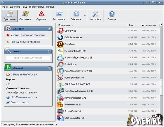 Uninstall Tool - представляет собой аналог апплета "Установка и Удаление программ", но предоставляет пользователю гораздо больше возможностей.