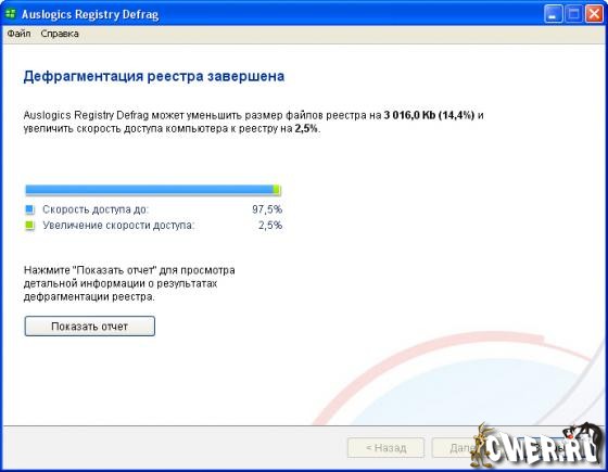 Auslogics Registry Defrag - отличная бесплатная программа для дефрагментации реестра операционной системы. Auslogics Registry Defrag позволяет ускорить работу Windows за счет дефрагментации реестра, оптимизации размещения информации в нем, а также благодаря исправлению ошибок, накапливающихся в реестре в процессе его долгой эксплуатации. ОС Windows осуществляет сотни обращений в секунду для чтения и записи данных в реестре и его медленная работа - одна из важнейших причин медленной работы всей системы в целом. Auslogics Registry Defrag проведет анализ реестра, чтобы выяснить, следует ли делать дефрагментацию и какие результаты получатся. После завершения анализа и работы, Auslogics Registry Defrag подготавливает подробный и понятный отчет с результатами своей работы.