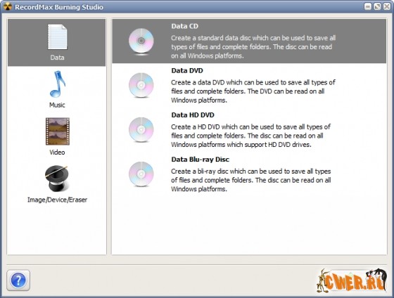 Многие пользователи устали от супер-сложных программ для записи CD-дисков, которые все время становятся сложнее и сложнее в использовании. Иногда вы можете потратить очень много времени просто в поисках нужной функции. RecordMax Burning Studio - концентрируется на том, что вам нужно: быстро и просто записывать диски, сохраняя максимум качества записи и требуя минимум ваших усилий. В программу входит все, что вам нужно; а все лишнее из программы исключено.
