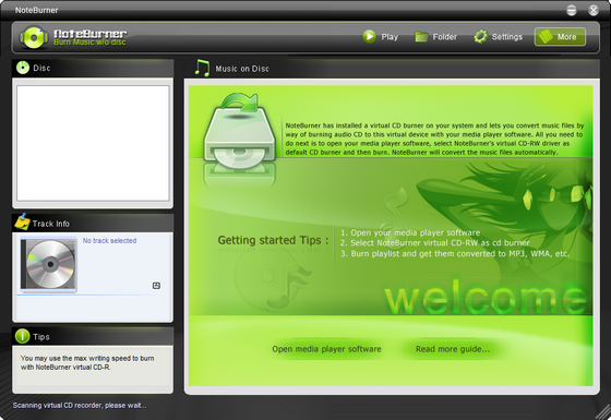 NoteBurner - конвертер аудиофайлов, способный освобождать аудиофайлы от защиты DRM, которая ограничивает права воспроизведения музыки на компьютерах и портативных устройствах. Поддерживает работу с форматами WMA, M4P, AA, M4B, MP4 и может преобразовывать их в незащищенные файлы MP3, WAV и WMA. Для конвертирования используется виртуальное устройство CD-RW, которое добавляется в систему после установки программы. Созданные аудиофайлы содержат те же ID3-теги, что и исходные файлы, в том числе название песни и альбома, имя исполнителя и т.д. Кроме того, программа имеет средства для нормализации звука и следит за тем, чтобы уровень громкости был примерно одинаковым для всех файлов. К тому же данную программу можно использовать и как обычный аудиоконвертер для преобразования в другой формат незащищенных файлов.