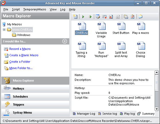 Macro Expert - приложение для автоматизации каждодневных рутинных задач. Macro Expert предназначено для упрощения работы путем назначения специальных команд-макросов для выполнения различных операций, от движения мыши до запуска программ и выключения компьютера.