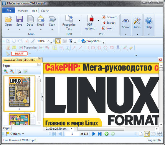 FileCenter — легкая в использовании программа для сканирования, архивирования, организации и поиска файлов на компьютере. Эта программа объединяет в едином интерфейсе большую функциональность для управления файлами, сканирования, OCR-распознавания, конвертирования файлов в PDF документы и их просмотра во встроенном просмотрщике PDF файлов. С помощью этой программы вы сможете организовать файлы в «файловые кабинеты», делать предпросмотр файлов без необходимости в их открытии, проделывать полнотекстовый поиск на рабочем и сетевых компьютерах, шифровать или полностью уничтожать любые файлы, отправлять файлы по электронной почте в качестве PDF, архивировать почту Outlook в отдельный файл и многое другое.