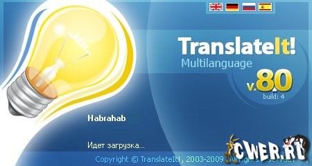 TranslateIt! - это уникальный и по-настоящему контекстный англо-русский, немецко-русский и русско-английский словарь, работающий в любых приложениях Windows. Теперь, встретив незнакомое слово, Вам не надо отвлекаться от чтения и искать перевод в словаре, просто подведите указатель мыши к незнакомому слову и тут же получите перевод. Кроме того, TranslateIt! может прочесть его вслух и отобразить транскрипцию (для английских слов). Принцип работы программы TranslateIt! основан на уникальной технологии "One touch capture", смысл которой заключается в переводе слова простым наведением на него курсора мыши.