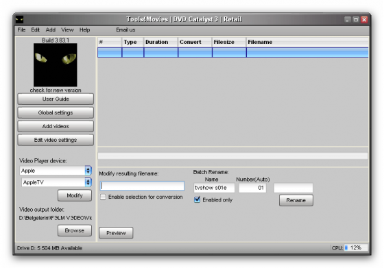 DVD Catalyst - программа для конвертирования и адаптации DVD, кино и видео для КПК. Является функционально-богатым приложением для конвертации DVD и видео в практически любой портативный формат для просмотра ролика на мобильных устройствах. Программа позволяет конвретировать DVD фильмы, а также файлы в форматах AVI, DIVX, XVID, MPEG, MKV и другие в файлы поддерживаемых форматов для iPod, iPhone, PocketPC, HandheldPC, Laptop, XBOX, PS3 и других портативных устройств. В отличии от других программ подобного рода данная программа не требует установки дополнительного программного обеспечения.