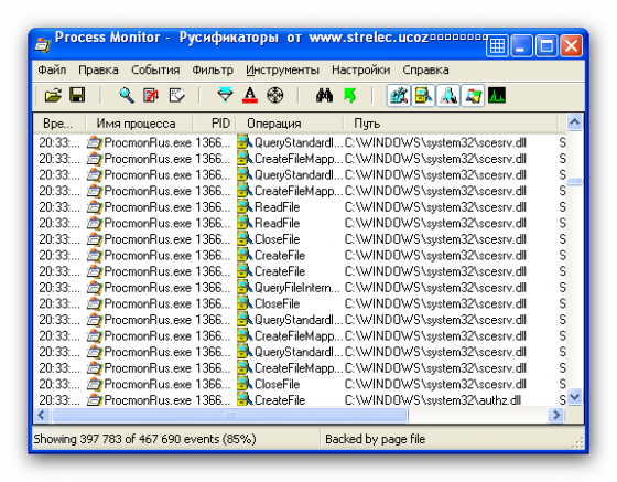 По сути, Process Monitor обьединяет в себе возможности популярных утилит этого же автора: Filemon (мониторинг файловой системы), Regmon (мониторинг реестра) и Process Explorer (мониторинг процессов)...