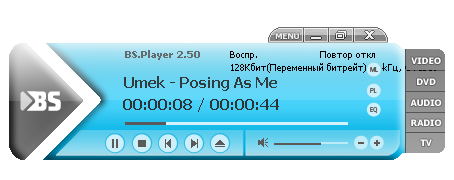 BS.Player - мультимедийный проигрыватель с поддержкой скинов, позволяет воспроизводить почти все современные видео-форматы. Весьма непритязателен к аппаратным ресурсам. Поддерживает скины, плей-листы и субтитры (сделанные практически во всех известных программах), временную коррекцию субтитров, масштабирование изображения, внешние источники звука и S/PDIF выход для AC3 файлов. Имеется также поддержка Pan-scan (стандартный и ручной режимы), функция progressive rendering, позволяющая избавиться от выпадания кадров, захват кадров, эквалайзер, закладок и ускоренного/замедленного просмотра.