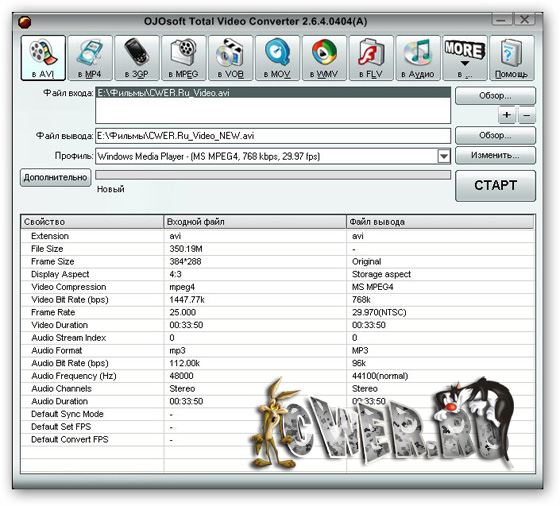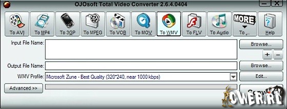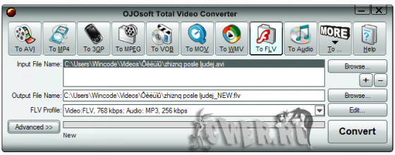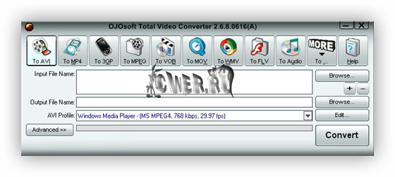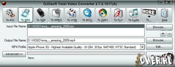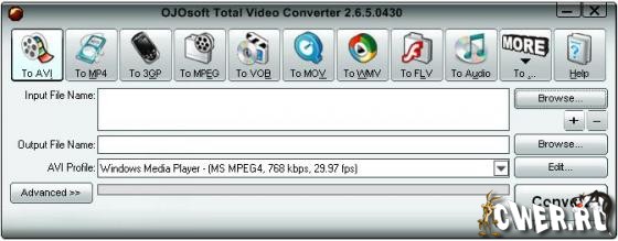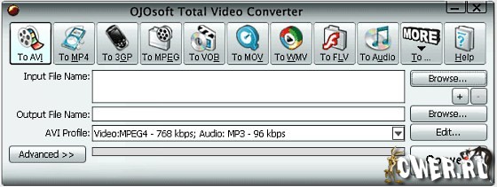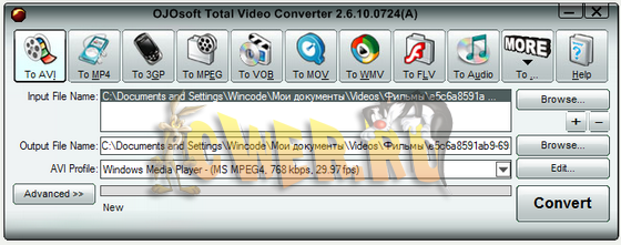 OJOsoft Total Video Converter - очень мощная программа, которая позволяет конвертировать любые видеофайлы в форматы 3gp (формат мобильных телефонов и наладонников), mp4, psp, iPod, swf, flv, DVD, VCD.