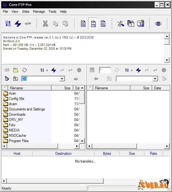 Очень удобный клиент для работы с FTP-серверами. Авторы учли все достоинства и недостатки, имеющиеся в других клиентах, и постарались сделать достойную программу. Вот некоторые возможности программы: прямая передача файлов с сайта на сайт, поддержка функций drag & drop, возможность остановки передачи и возобновление ее через определенное время, удаленный поиск файлов, поддержка протоколов FTP.