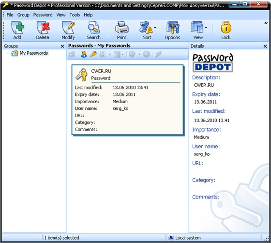 Password Depot Professional - это эффективный инструмент, управляющий всеми вашими паролями. Вы больше не забудете пароль. Программа защищает ваши пароли от внешнего доступа, будучи при этом максимально удобной в использовании. Особенности: создание почти неподдающихся расшифровке паролей, автоматизированный вход в систему, шифрование данных.