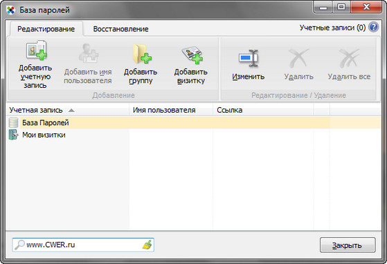 Незаменимый помощник в Интернет серфинге. Хранит секретные сведения, логины, пароли, номера кредитных карт, пин коды, серийные номера и ключи к программам в зашифрованном виде, телефоны и что захотите. Вводит эти данные в любые поля ввода любых форм легким перетаскиванием мыши (например для доступа к вашему ресурсу у провайдера в браузере или при выходе в Интернет в окно удаленного доступа, или в окне регистрации программы при вводе ключа или серийного номера…). Хранит адрес страницы, одним щелчком запускает нужную Интернет страницу.