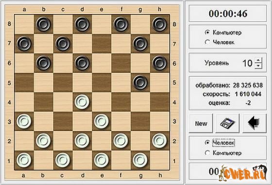 Строгие класические шашки, но очень сильно играют. Имеется 32 уровня сложности. Приятно располагаются на рабочем столе. Имеют поддержку русского и английского языков. Да! И поддавки, конечно, тоже имеются! Также в архиве имеется версия для мобильного.