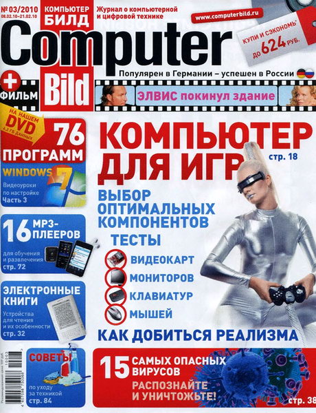 Computer Bild - крупнейший европейский журнал о компьютерах. Темы номера: апгрейд компьютера, мультимедиа-плееры, бесплатная телефония, обзор элементов питания, операционных систем мобильных устройств, а также программы, советы, секреты.