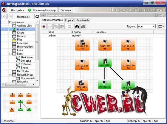 The Dude - небольшая, бесплатная программа, которая предназначена для сканирования сетей, мониторинга работы подключенных к ним устройств и предупреждения администратора в случае возникновения каких-либо проблем.