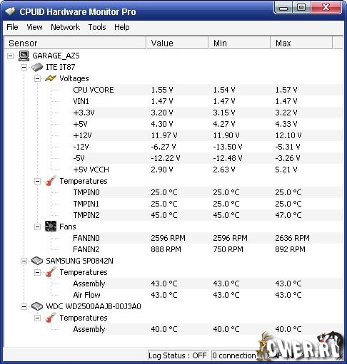 HWMonitor Pro - расширенная версия утилиты, разработанной для мониторинга показателей компонентов компьютера. В этот перечень входит температура, скорость вращения вентиляторов, а также напряжение. Приложение, которое можно бесплатно скачать на cwer.ws, поддерживает мониторинг процессорных датчиков, множества различных чипов мониторинга, abit uGuru 2003 и uGuru 2005, сенсоров блоков питания Gigabyte ODIN, S.M.A.R.T. показателей накопителей и видеокарт на базе GPU производства ATI и nVIDIA.