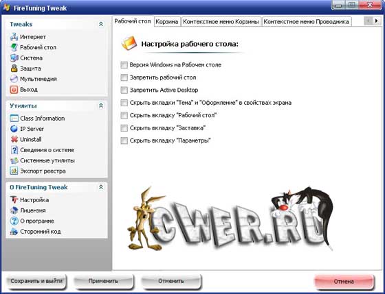 Утилита для настройки, оптимизации и защиты, а также для изменения скрытых настроек Window XP и Windows Vista. Она осуществляет настройку браузера Internet Explorer, оптимизирует соединение с Интернетом, настраивает Рабочий стол, Корзину, выставляет нужное разрешение экрана, осуществляет управление загрузкой операционной системы. Кроме того, утилита может настроить Проводник, Панель задач, меню Пуск и т.д.