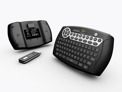 Компания Micro-Star International (MSI) представила беспроводную мини-клавиатуру Air Keyboard. Клавиатура сделана таким образом, что пользователю будет удобно держать ее обеими руками, осуществлять ввод большими пальцами, а также с ее помощью дистанционно управлять домашним медиа-центром.