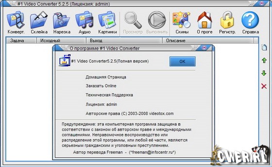 #1 Video Converter - удобная многофункциональная программа для работы с видео. В #1 Video Converter существует несколько основных направлений в работе: конвертирование видео, извлекание аудио дорожки, создание секвенции графических файлов, резка и склейка видеофайлов. #1 Video Converter поддерживаем форматы AVI, MPEG1,MPEG2, VCD, SVCD, DVD, WMV, ASF. Для трёх основных действий программы (конвертирование видео, резка и склейка) предусмотрены пошаговые мастера, которые помогают быстро выбрать все необходимые настройки операции.