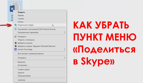 С недавних пор в контекстном меню при нажатии на любом файле правой кнопкой мыши появился новый пункт под названием «Поделиться в Skype». В этом видео я покажу как его оттуда убрать.